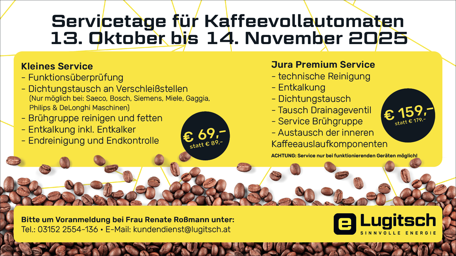 Vom 13. Oktober bis 14. November finden wieder unsere Servicetage für Kaffeevollautomaten statt.